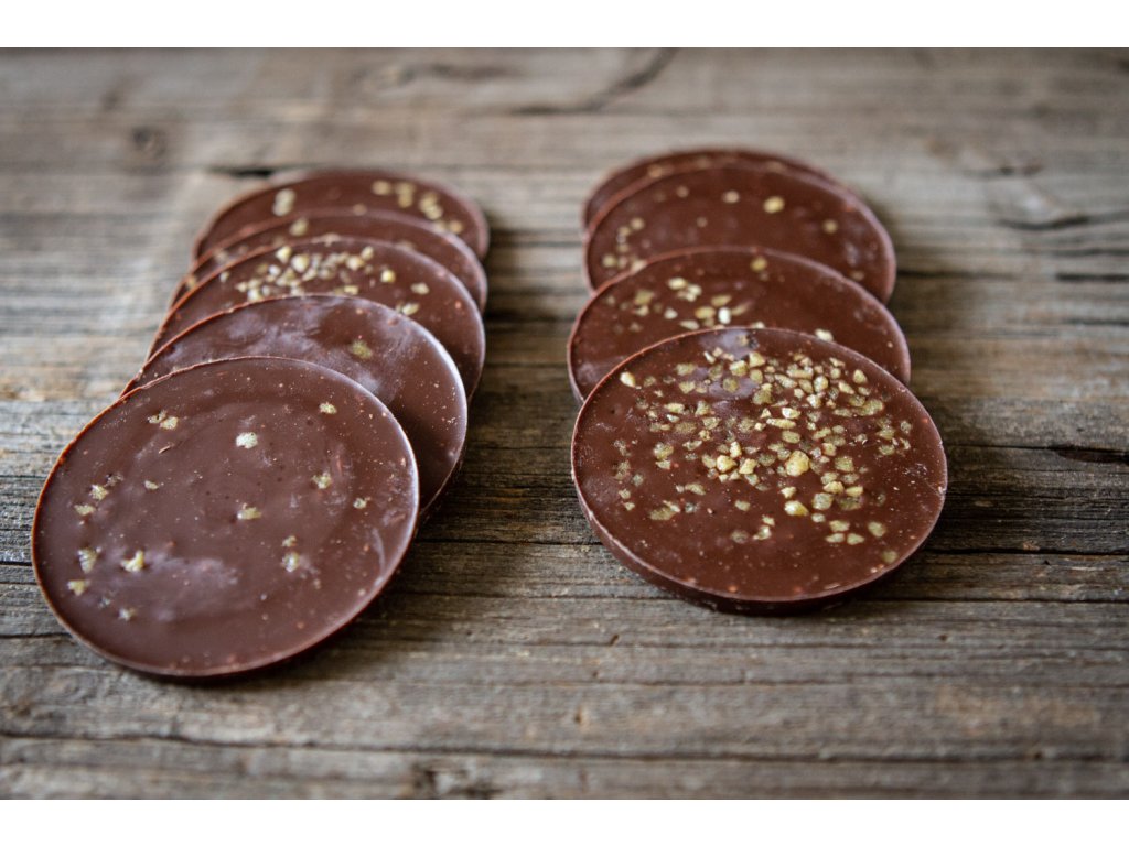 Okrouhlá mléčná čokoláda s pekanovými ořechy a karamelem. Užijte si Vánoce s naším LYRA speciálem!