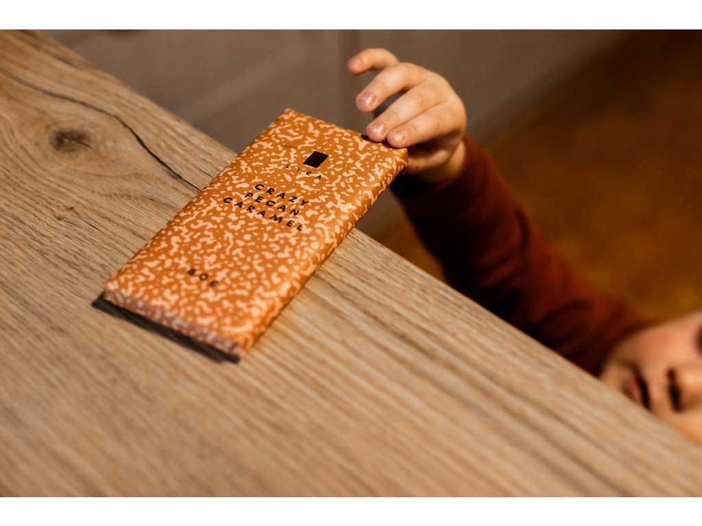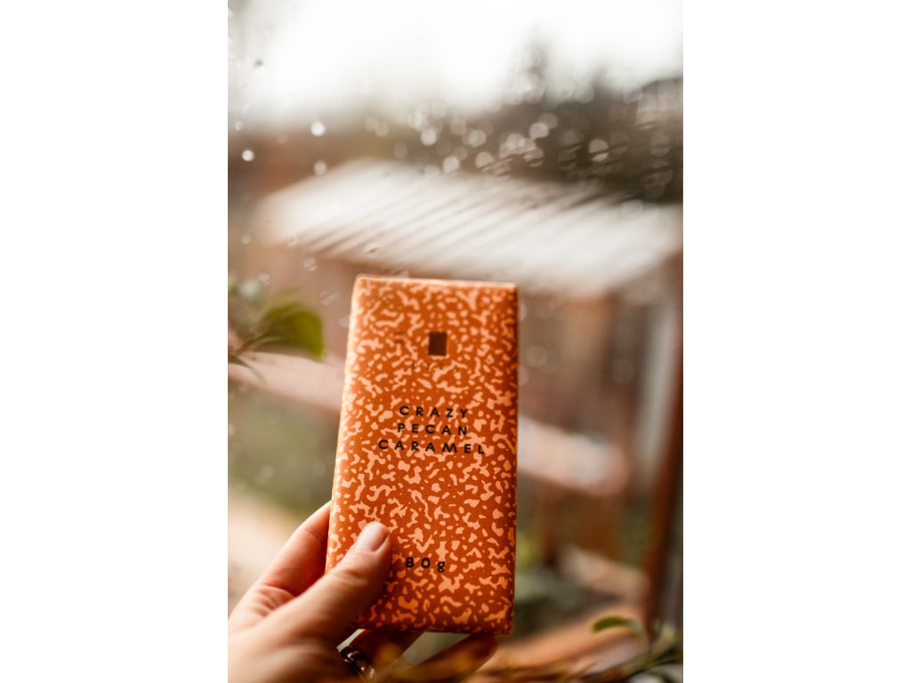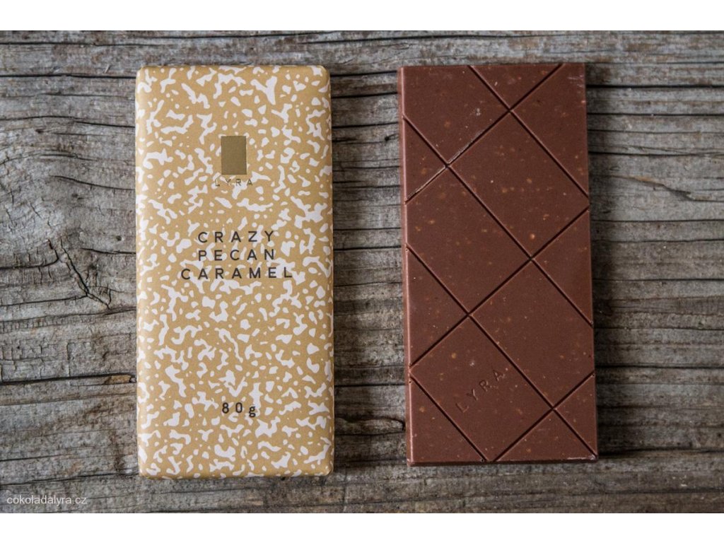 CRAZY PECAN CARAMEL - mléčná čokoláda s pekanovými ořechy a slaným karamelem