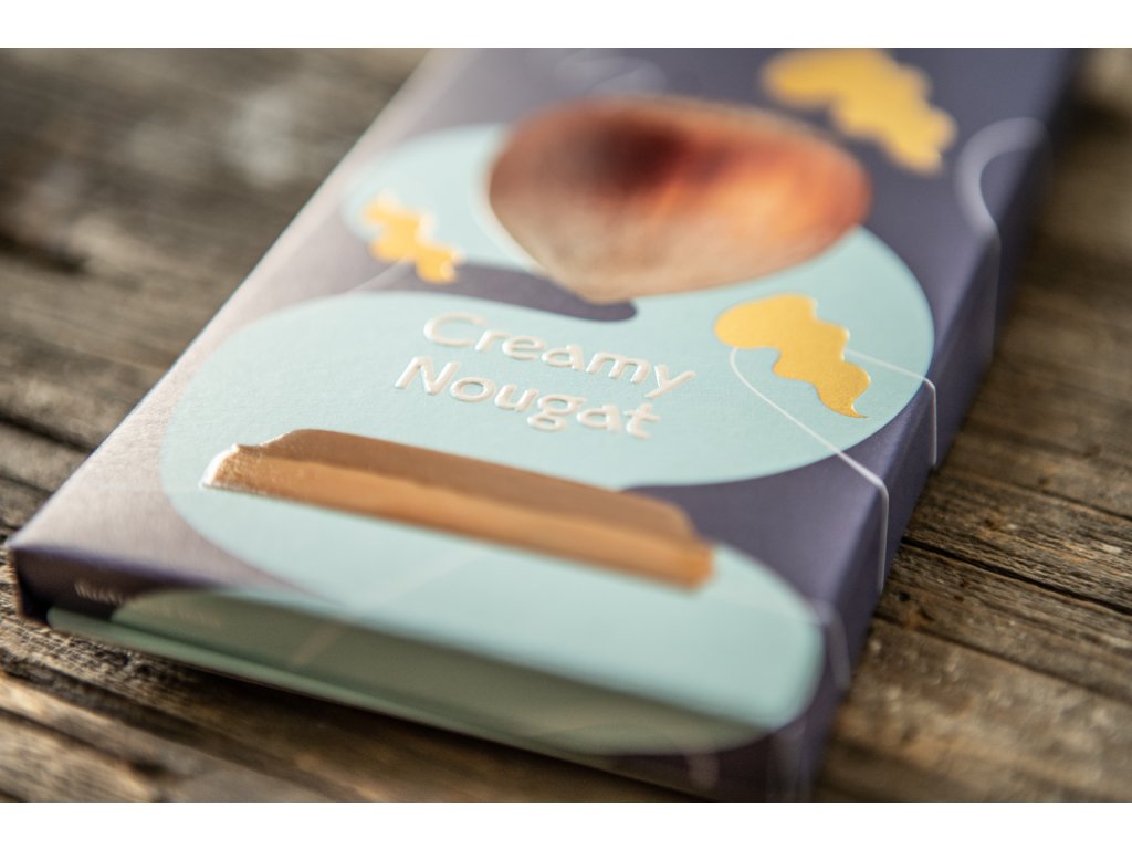 V každém kousku se snoubí kakaové máslo, mléčné tóny a krém z pražených lískových oříšků. Vanilka z Madagaskaru dodává čokoládě jemné, hřejivé aroma a podtrhuje její lahodnou oříškovou chuť. Creamy Nugát je poctou těm, kteří hledají sladkost s hloubkou, vůní a elegancí.