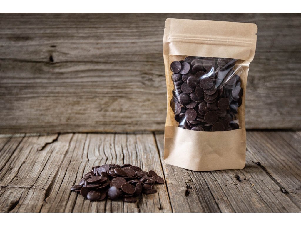 - Čokoláda je ve formě malých tmavých peciček.
