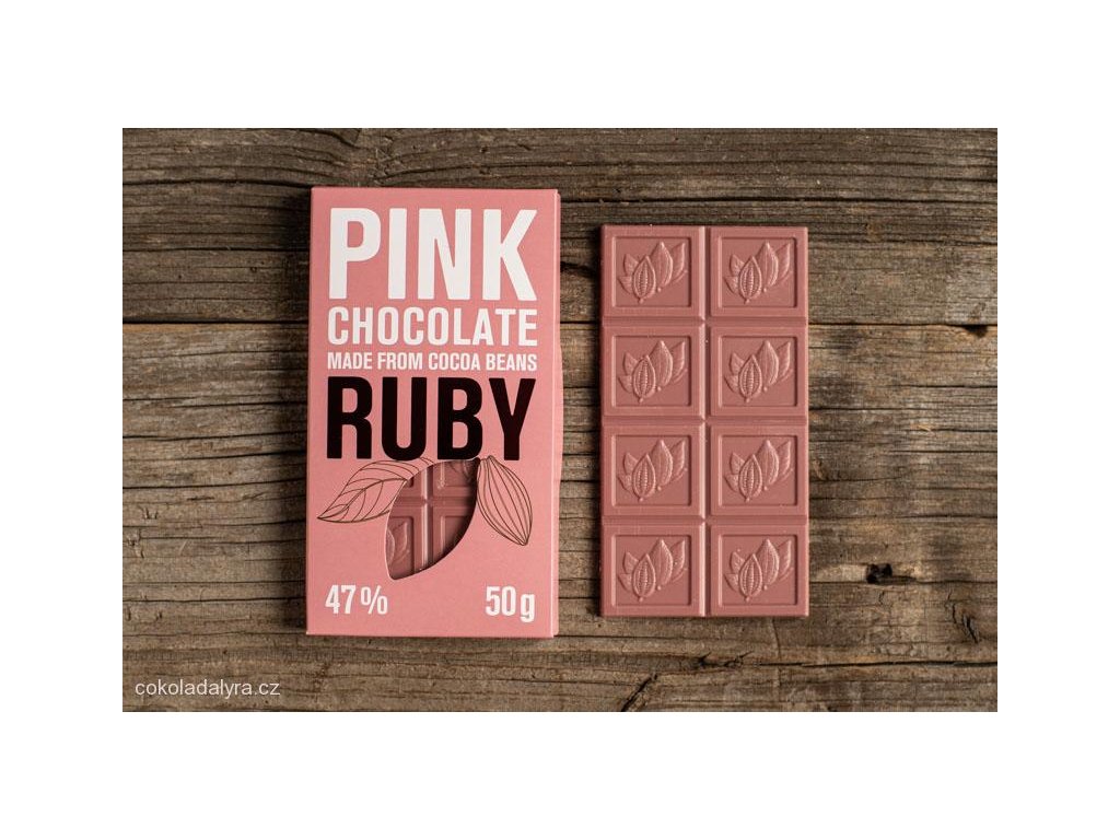 Kombinace kakaového másla, mléka a kakaových bobů Ruby vytváří čokoládu s jedinečným chuťovým profilem – jemně ovocným, svěžím a lehce nakyslým. Její specifický tón vychází z dužiny kakaových lusků, která obklopuje boby a dodává jim přirozenou kyselost i vůni. Čokoláda Ruby pochází z výběrových bobů z oblastí Ekvádoru, Brazílie a Pobřeží slonoviny, kde vzniká její přirozeně růžový odstín. V každém soustu se odráží rovnováha mezi mléčnou hebkostí a ovocnou jiskrou, která čokoládu proměňuje v zážitek pro všechny smysly.