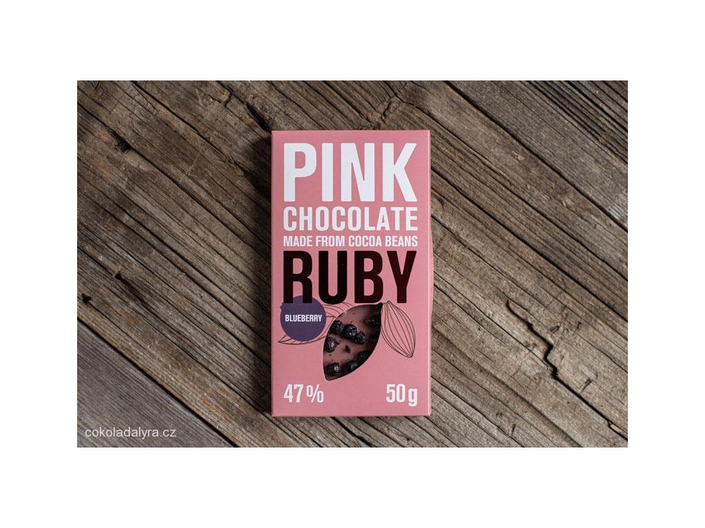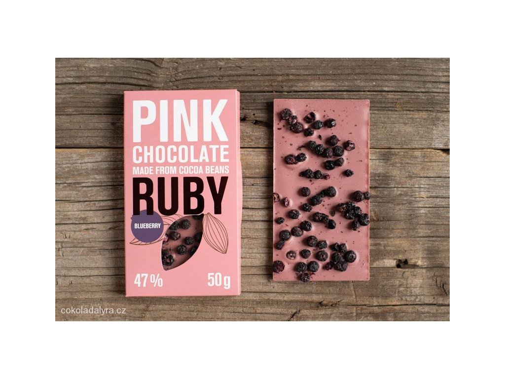 Růžová čokoláda, která má netypickou, jemně růžovou barvu a jejíž ovocná, jemně nakyslá chuť vás překvapí. Čokoláda prochází při výrobě jemnou fermentací, aby zůstala zachovaná růžová barva bobů, ale i jejich ovocná chuť. Lehce se tak chuťově dotknete dužiny, která vyplňuje kakaové lusky a která má také jemně nakyslý charakter. Čokoládu si vychutnáte společně s příjemnou chutí lyofilizovaných borůvek.